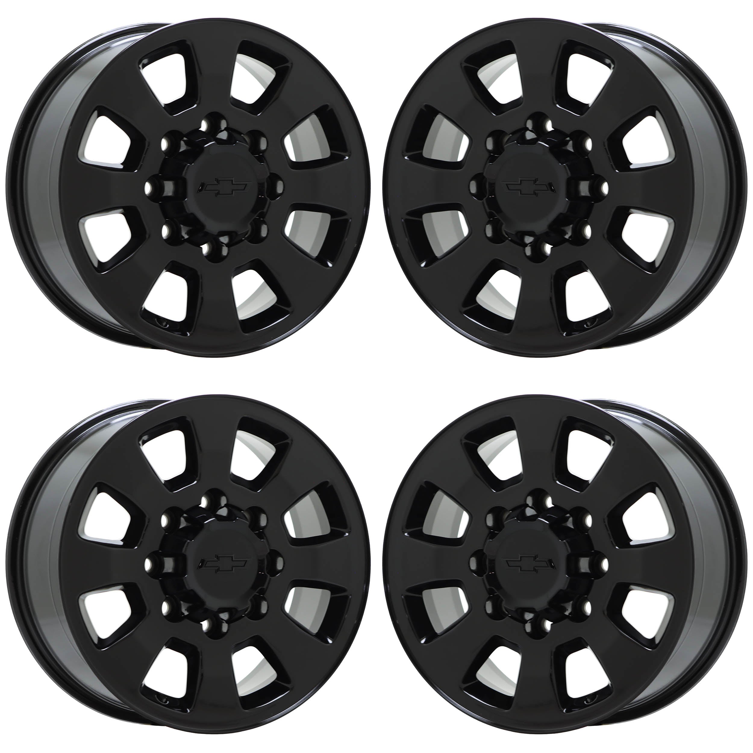 Set of (4) 18x8" Chevrolet Silverado 2500 3500 Truck Black wheelsThese are Factory OEM wheels that we strip and refinish in Gloss Black.Our coating comes with...