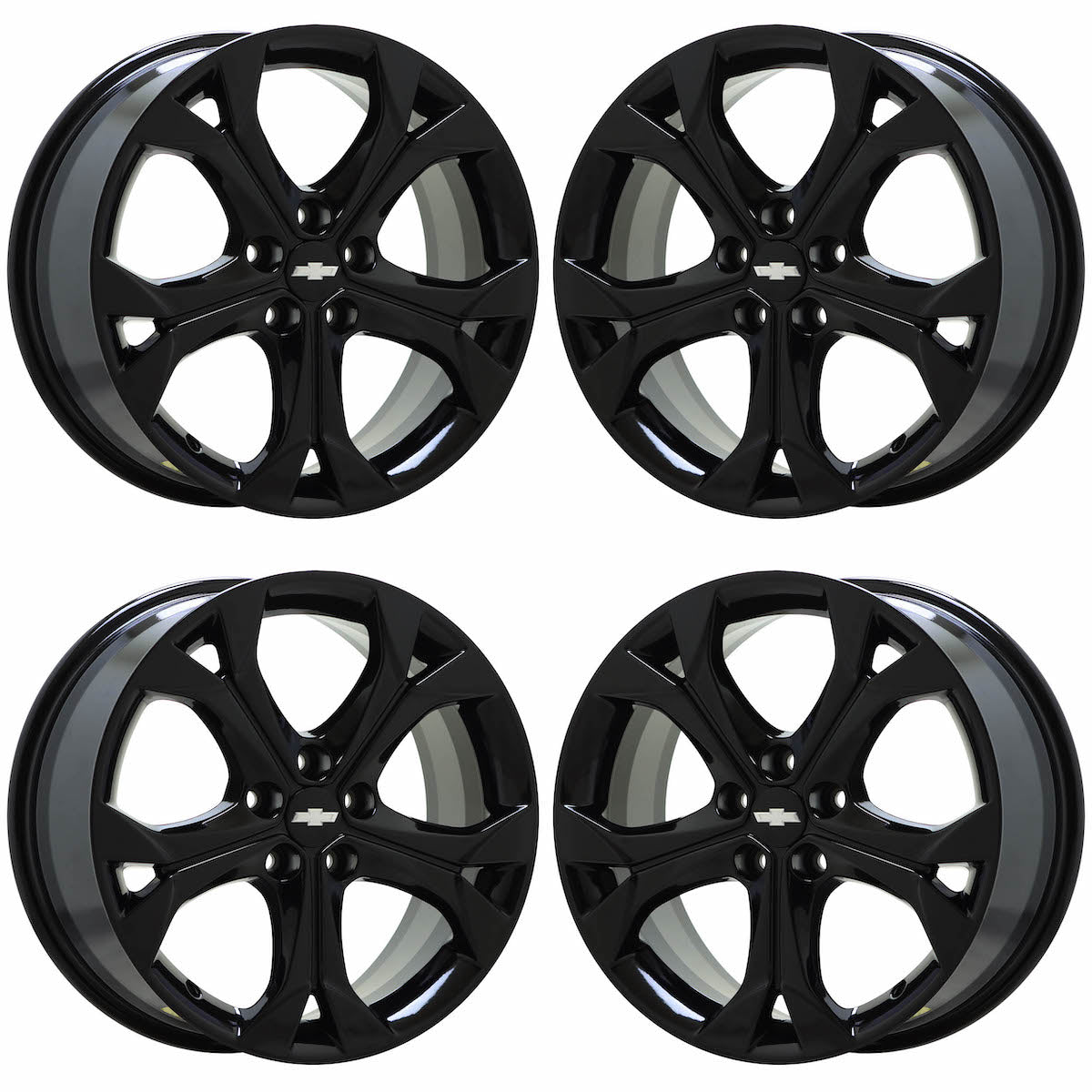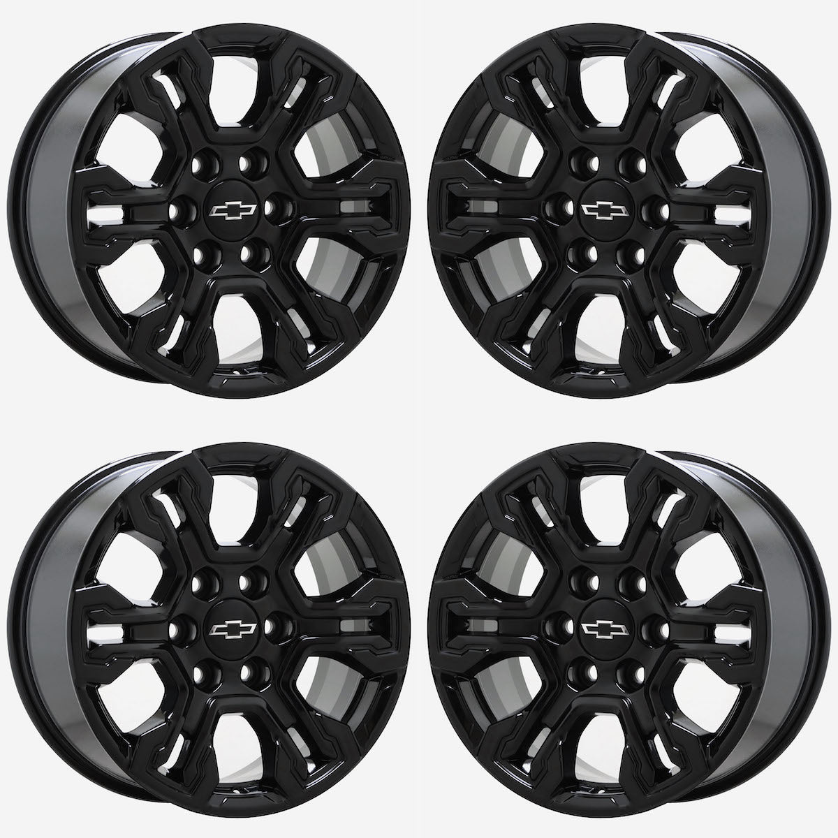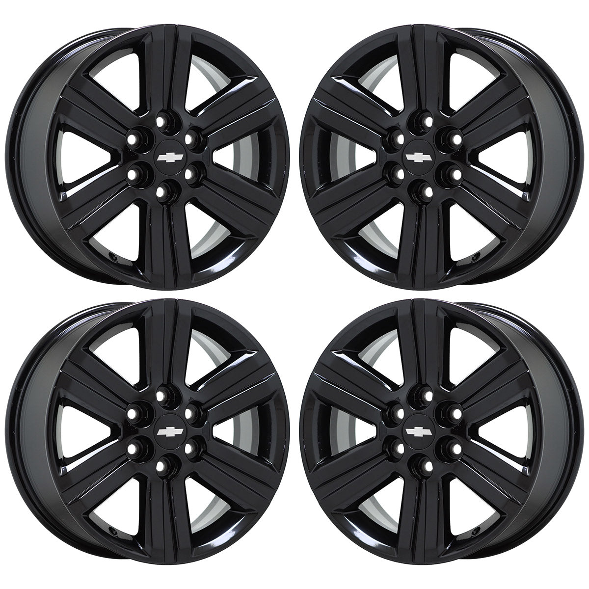 Set of (4) 20x9 Chevrolet Silverado 1500 Truck powder-coated Gloss Black wheelsThese are Factory OEM wheels that we strip and refinish these wheels in Gloss Black.Our...