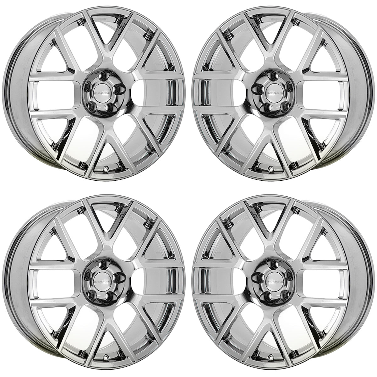 Set of (4) 20x8" Dodge Charger, Challenger RWD PVD Chrome coated wheelsThese are Factory OEM wheels that we strip and refinish in PVD Bright Chrome.Our coating...