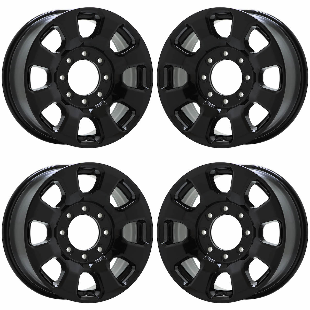 Set of (4) 18x8" Ford F-250, F350 Black Factory OEM wheelsThese are Factory OEM wheels that we strip and refinish in Gloss Black.Our coating comes with...
