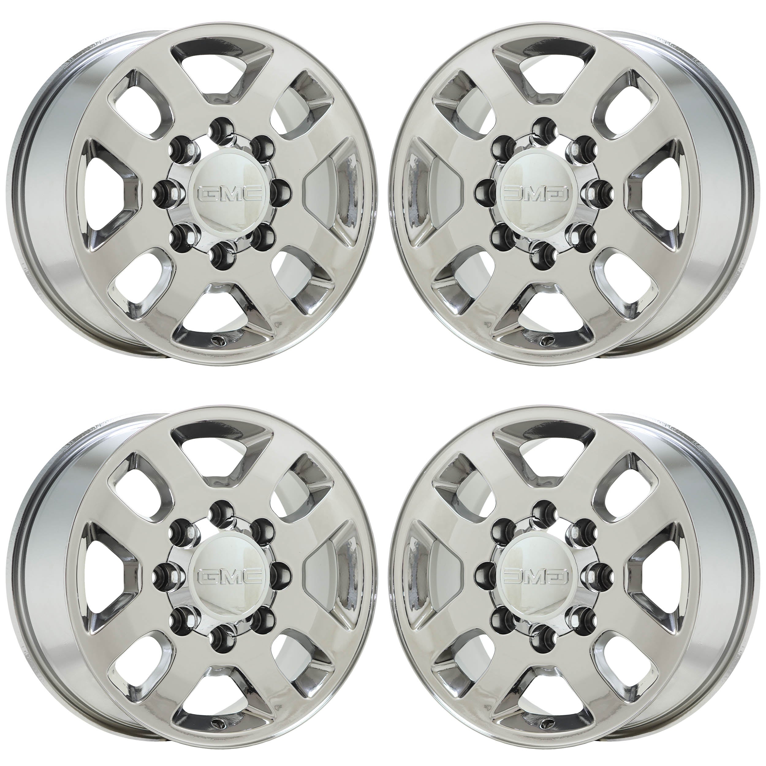 Set of (4) 18x8" GMC Sierra 2500 3500 Truck PVD DuraChrome coated wheelsThese are Factory OEM wheels that we strip and refinish these wheels in PVD...