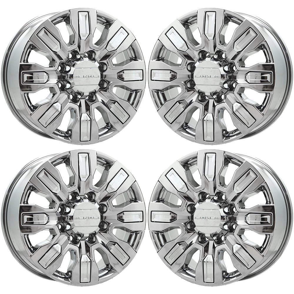 Set of (4) 20x8.5" GMC Sierra 2500 3500 Truck PVD Chrome coated wheelsThese are Factory OEM wheels that we strip and refinish these wheels in PVD...