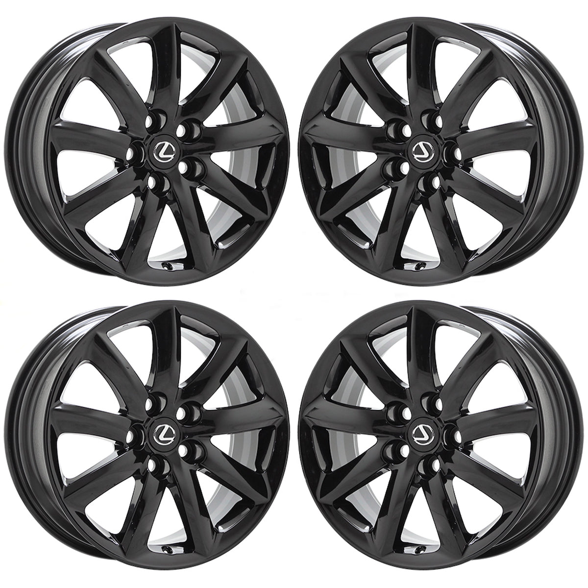 Set of (4) 18x8" 18x8.5" Lexus IS F-Sport Gloss Black coated wheels (staggered set)These are Factory OEM wheels that we strip and refinish in Gloss Black.Our...