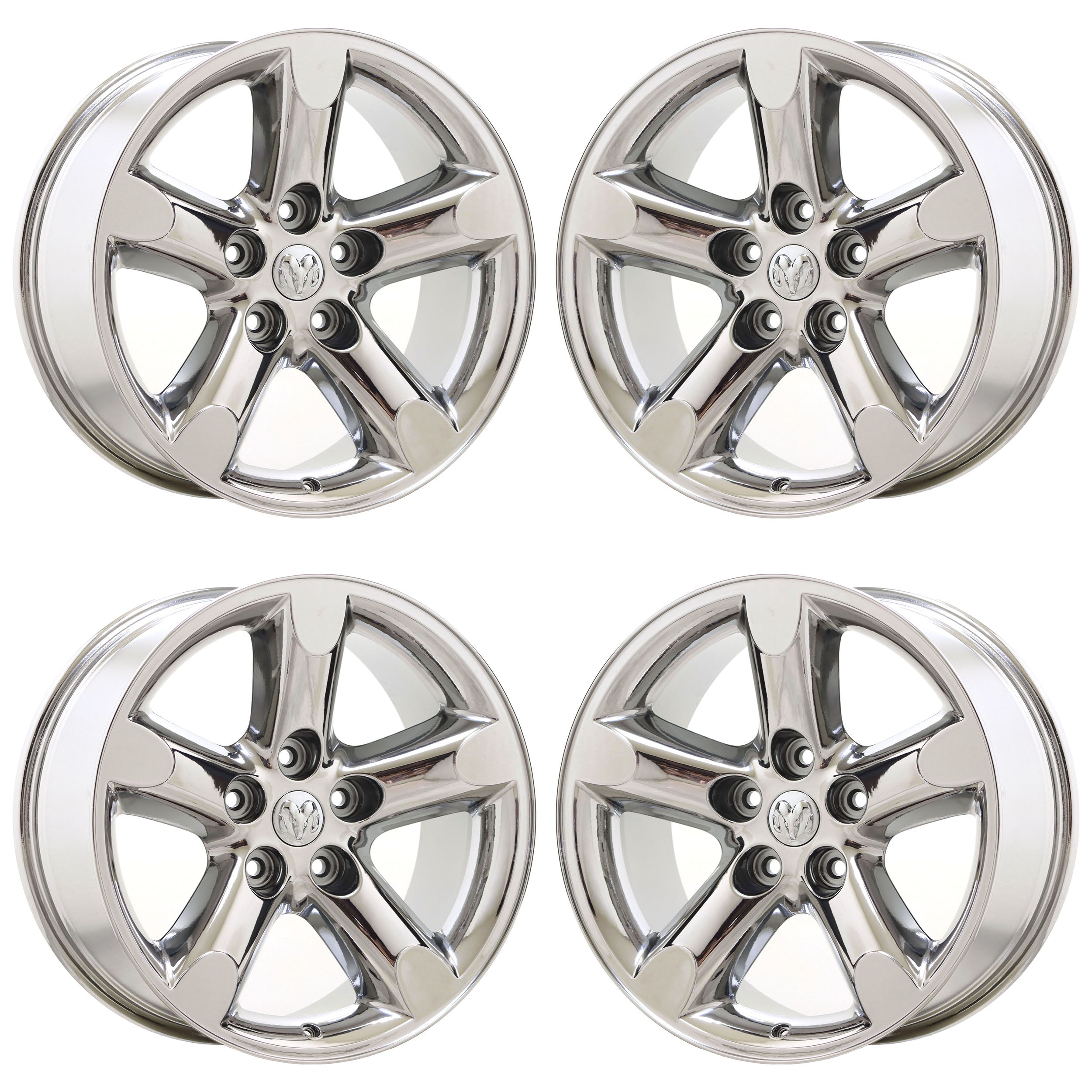 Set of (4) 20x9" Dodge Ram 1500 Truck PVD Chrome wheelsThese are Factory OEM wheels that we strip and refinish in PVD Bright Chrome.Our coating comes...