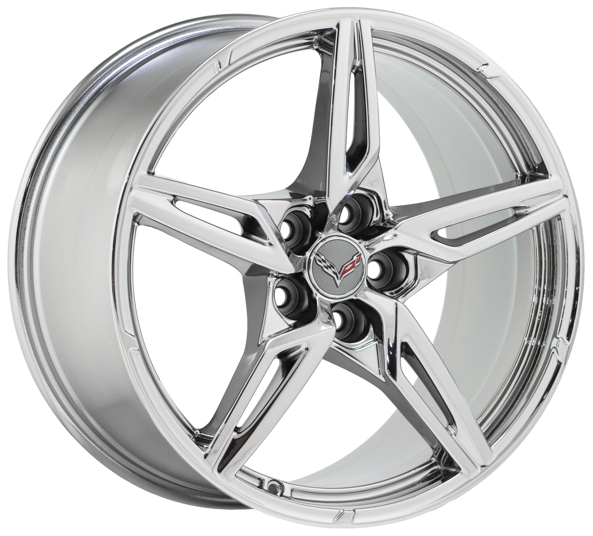 Set of (4) 19x8.5" 20x11" Chevrolet Corvette C8 PVD Chrome coated wheels